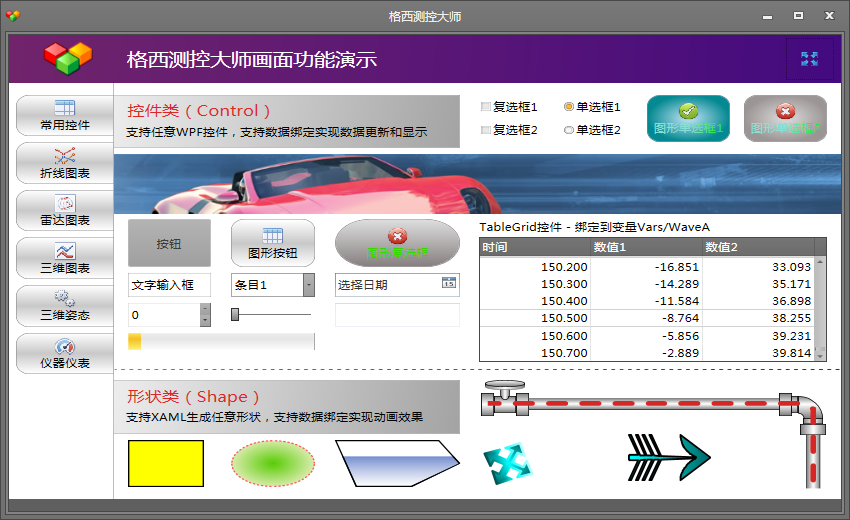 2、ImageBox控件支持GIF图片;Chart控件增加Colorizer功能;画面控件增加Visibility属性的绑定功能。